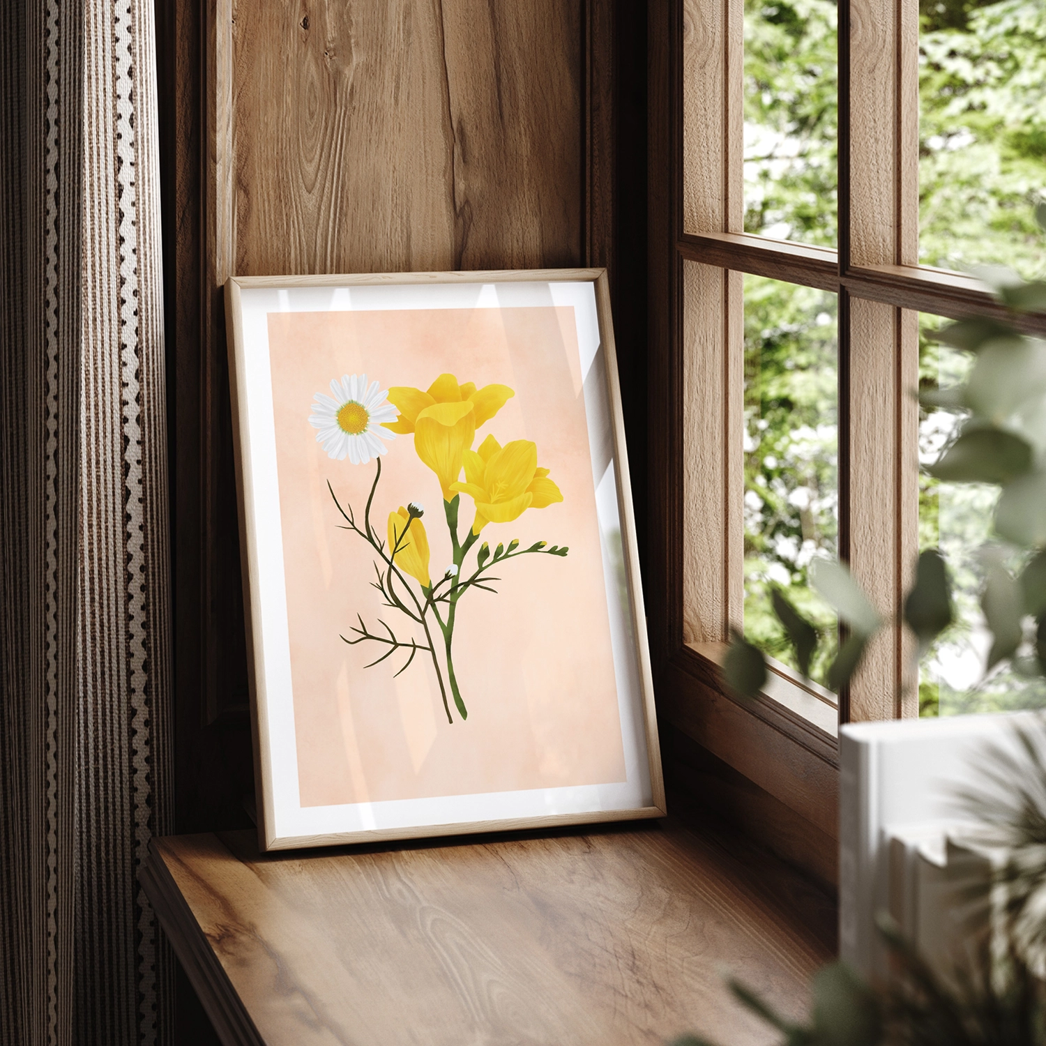 This art print beautifully captures the delicate charm of springtime blooms, perfect for enhancing your home decor to bring a sense of joy, hope, and serenity.