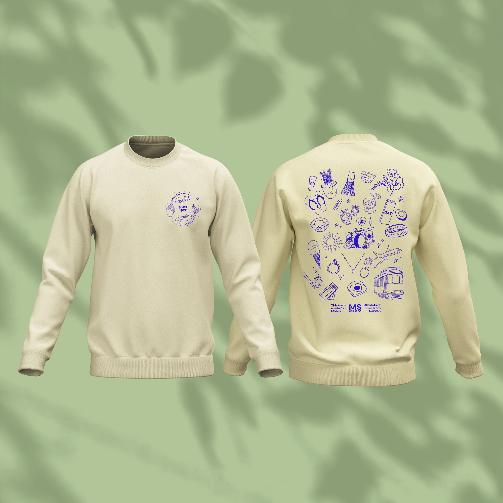 It’s a slow Sunday morning and they reach for the crewneck draped over the chair. The cotton is thick and brushed on the inside, that warm, soft kind that feels like it was made for exactly this kind of morning. They pull it over their head and catch a glimpse of themselves in the mirror, and there it is on the back. That little drawing of their dog. The book they’ve been recommending to everyone. The city skyline they grew up under. The hobby they’ve had since they were twelve. Details so specific, so quietly known, that they already know before they even turn around to thank you.
